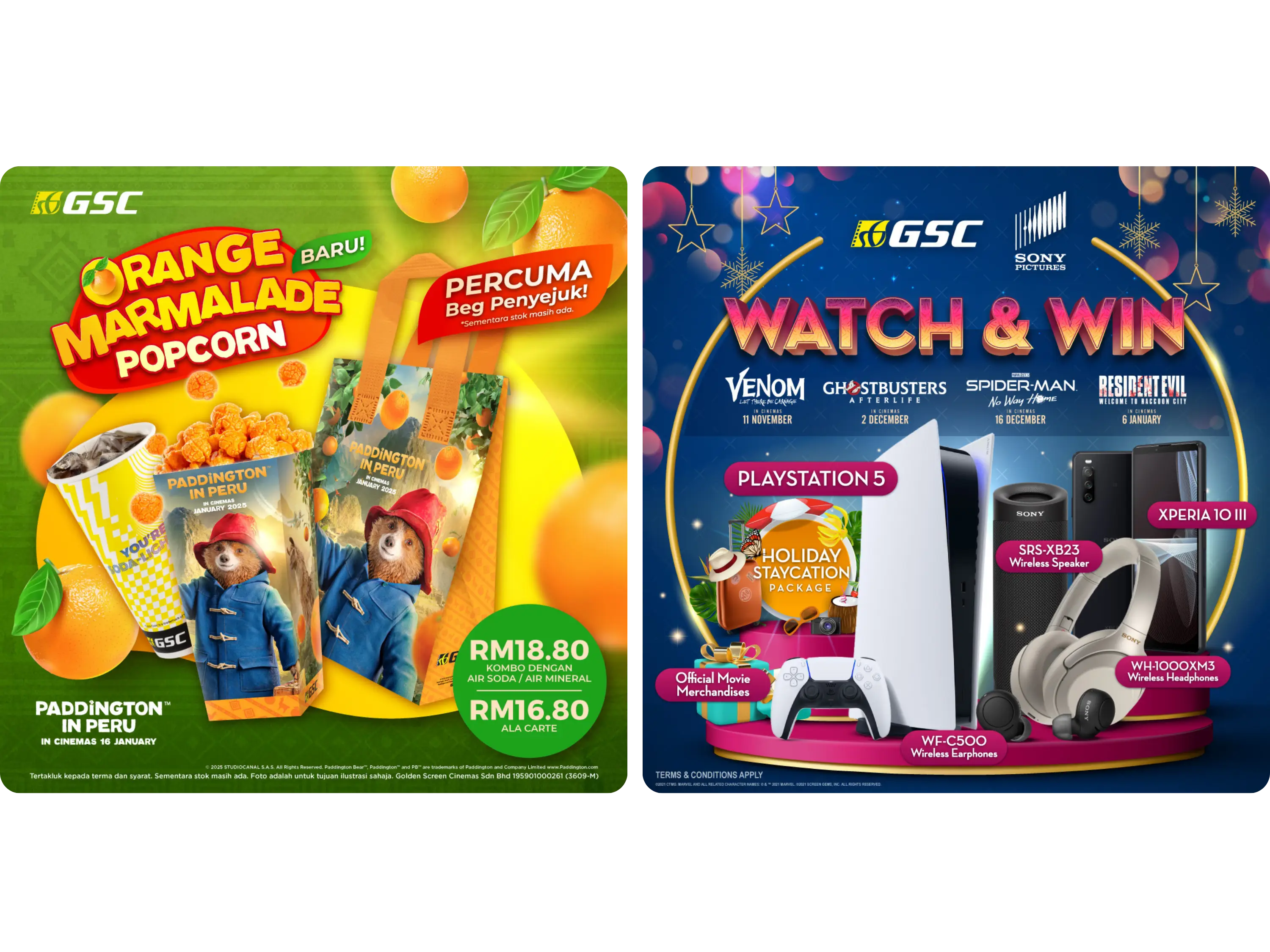 As Malaysia’s largest cinema exhibitor, GSC runs an extensive calendar of promotions and partnerships that demand strong creative support. We work alongside their in-house team to develop visuals for movie promotions, partner tie-ins and special merchandise deals, ensuring every campaign is engaging, on-brand and ready to capture the attention of cinema-goers.